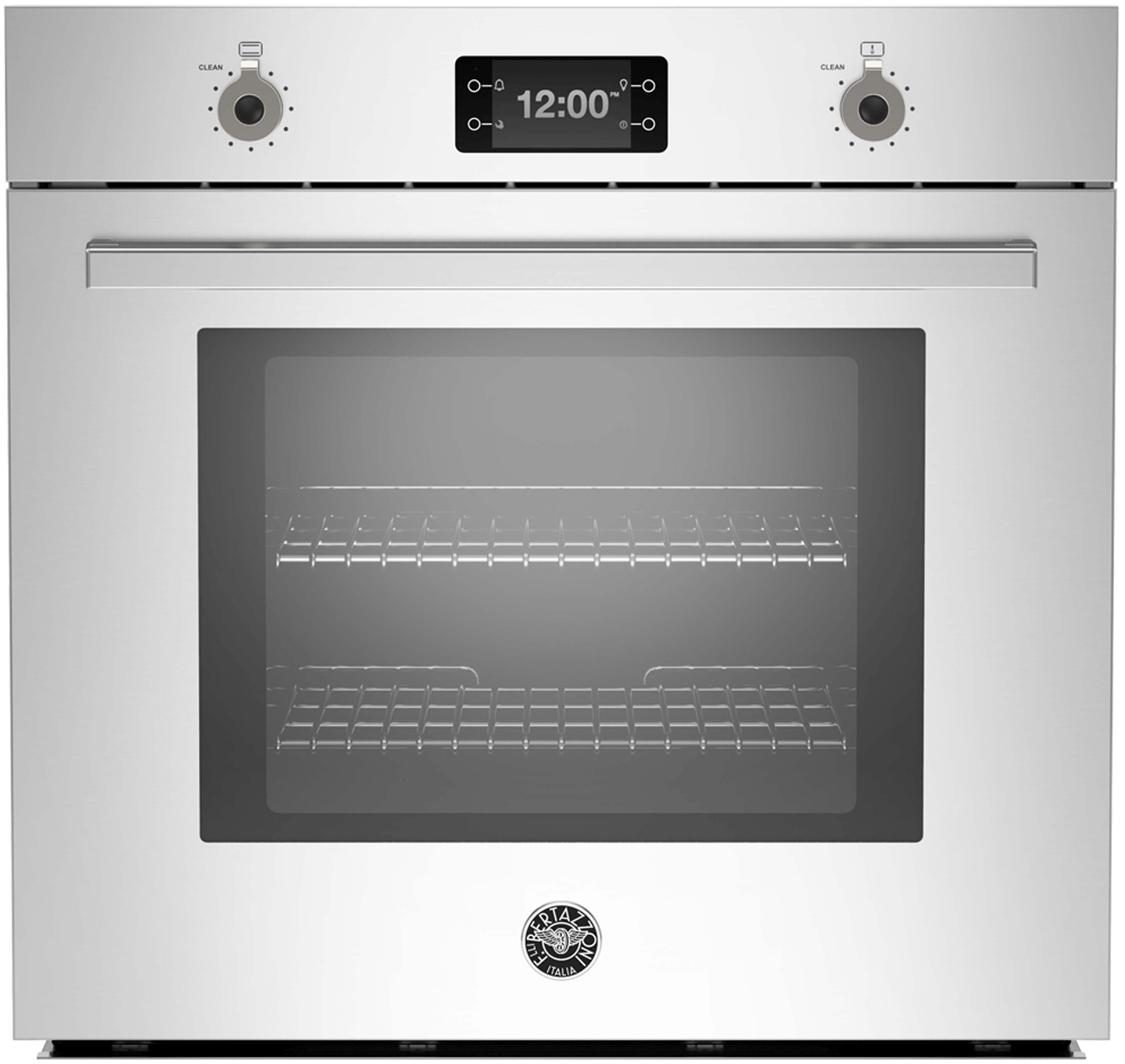 Bertazzoni ovens are superb cooking appliances designed, engineered and made in Italy. All Bertazzoni appliances integrate seamlessly into style-harmonized suites for a true, high-performing kitchen. The exclusive dual diagonal convection system with 4 separate heating elements ensures even temperature roasting and baking on 7 usable shelf positions with no flavor crossover. The extra wide electric broiler with optional convection is ideal for grilling and searing at high heat. For your convenience, this oven is equipped with telescopic shelve glides and a soft-motion door system. The exceptional, energy-efficient performance of the Bertazzoni convection wall ovens is enhanced by the intuitive and easy-to-use interface operated with ergonomic knobs and touch controls. Eleven cooking modes and the exclusive Bertazzoni ASSISTANT - which assists you like a virtual sous-chef in creating, managing and storing your cooking instructions for always perfect results - make this new Bertazzoni oven the perfect partner in your kitchen. All Bertazzoni appliances are covered by a 2-year warranty. Products and packaging are 99% recyclable.