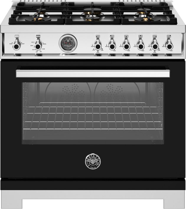 The 5.9 cu.ft gas oven with dual horizontal convection allows even baking and roasting on 7 shelf levels. Bertazzoni ovens are equipped with an extra-large highpower broiler for broiling and grilling.Read More