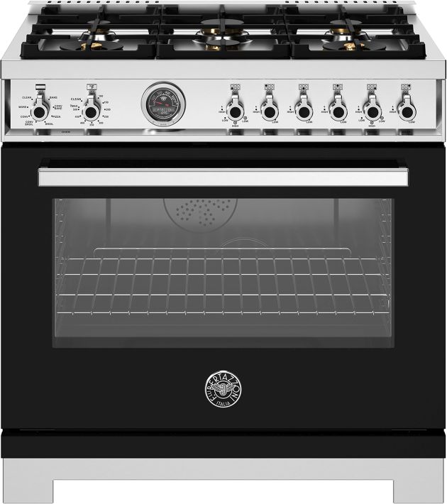 The 5.7 cu.ft electric self-clean oven with dual diagonal convection allows even baking and roasting on 7 shelf levels. Bertazzoni ovens are equipped with an extralarge high-power broiler for broiling and grilling.