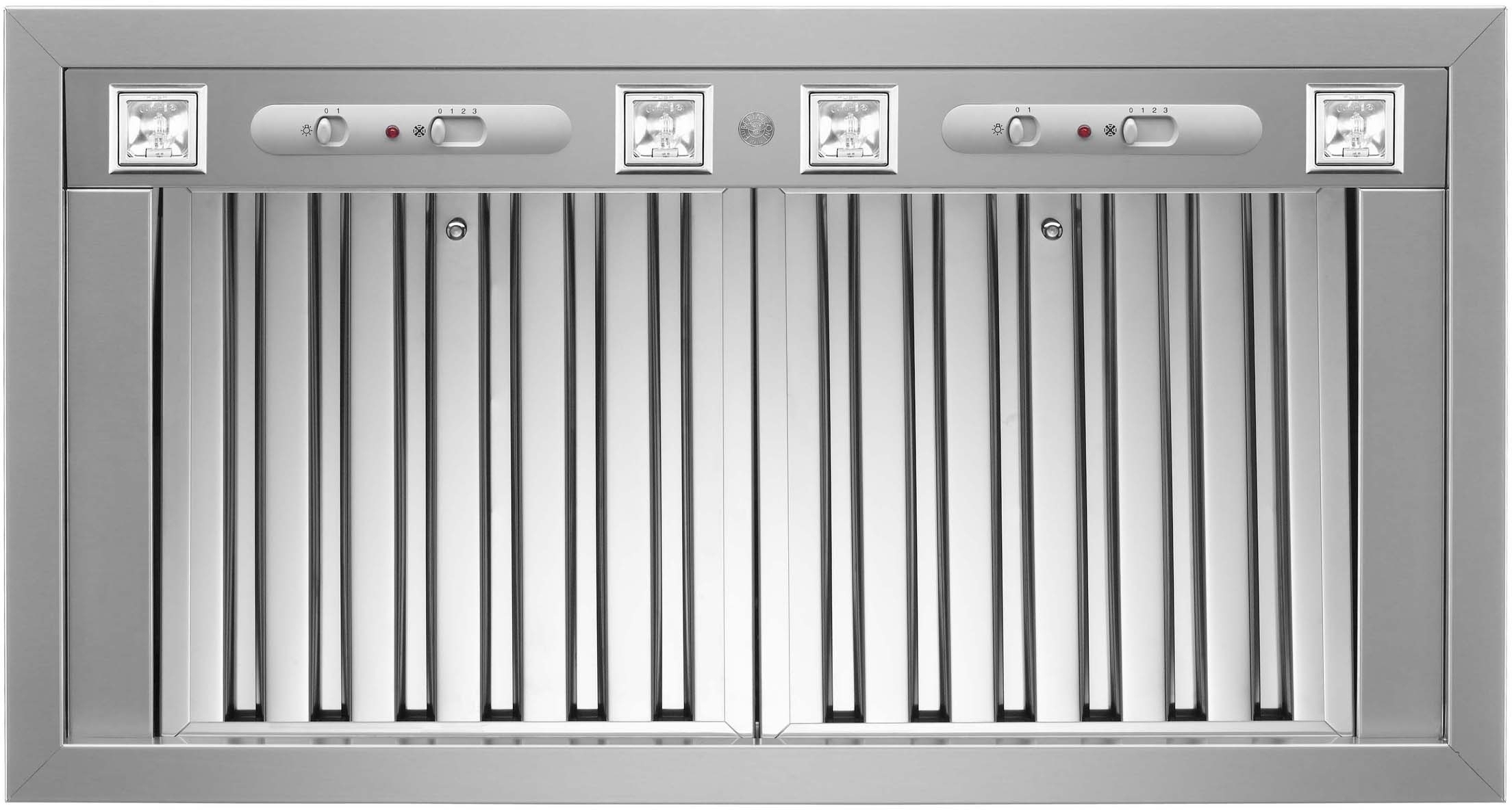 All Bertazzoni hoods are designed, engineered and made in Italy using the highest grade materials and components. Every hood pairs perfectly with all Bertazzoni ranges, rangetops and cooktops of the same size and integrates seamlessly with all other Bertazzoni appliances into style-harmonized suites for a true, high-performing kitchen. Powered by two 600 CFM motor, each with three power settings, this high-performance ventilation liner comes with metal baffle filters, easily removable and dishwasher safe. LED lights provide bright illumination of the cooking surface under the hood. All Bertazzoni appliances are covered by a 2-year warranty. Products and packaging are 99% recyclable.