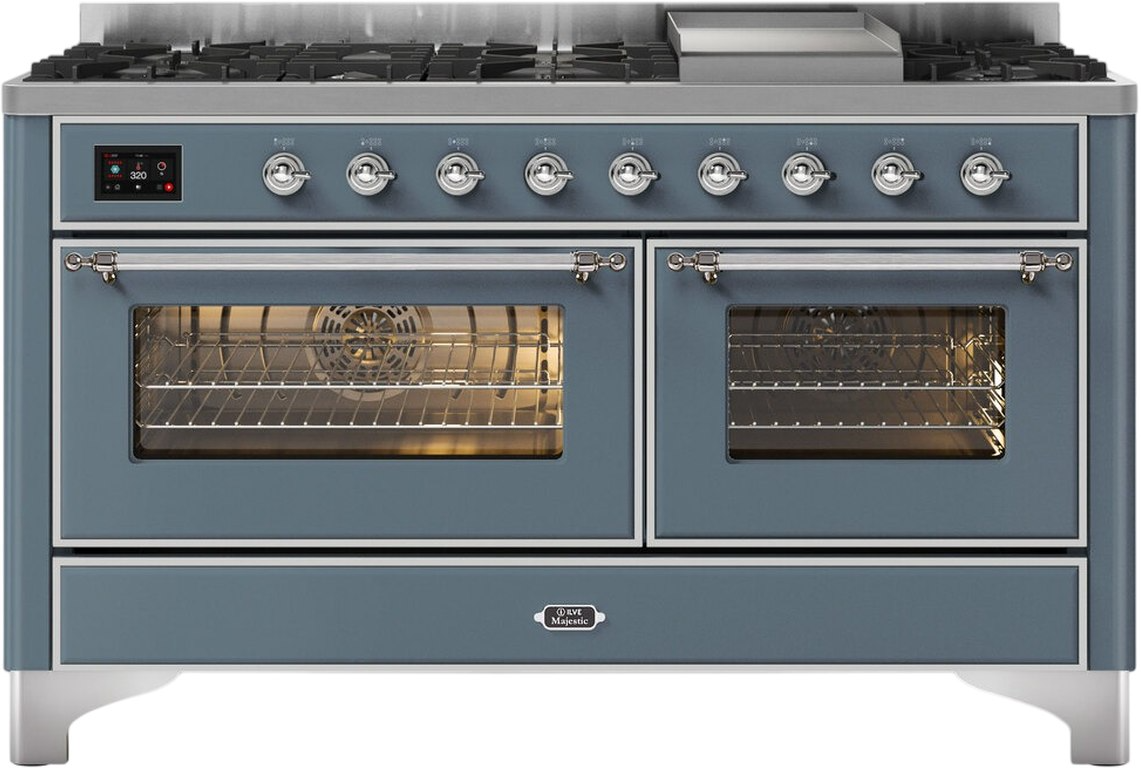 The Majestic 60" dual fuel range combines the classic Italian style and cutting-edge technology. This range feature 9 gas burners and a griddle, equipped with a total black brass flame spreader with non-stick nanotechnological coating, dual 3.5 + 2.3 cu. ft. total oven capacity, 4.3" full touch oven control display and easy clean enamel oven cavity.Read More
