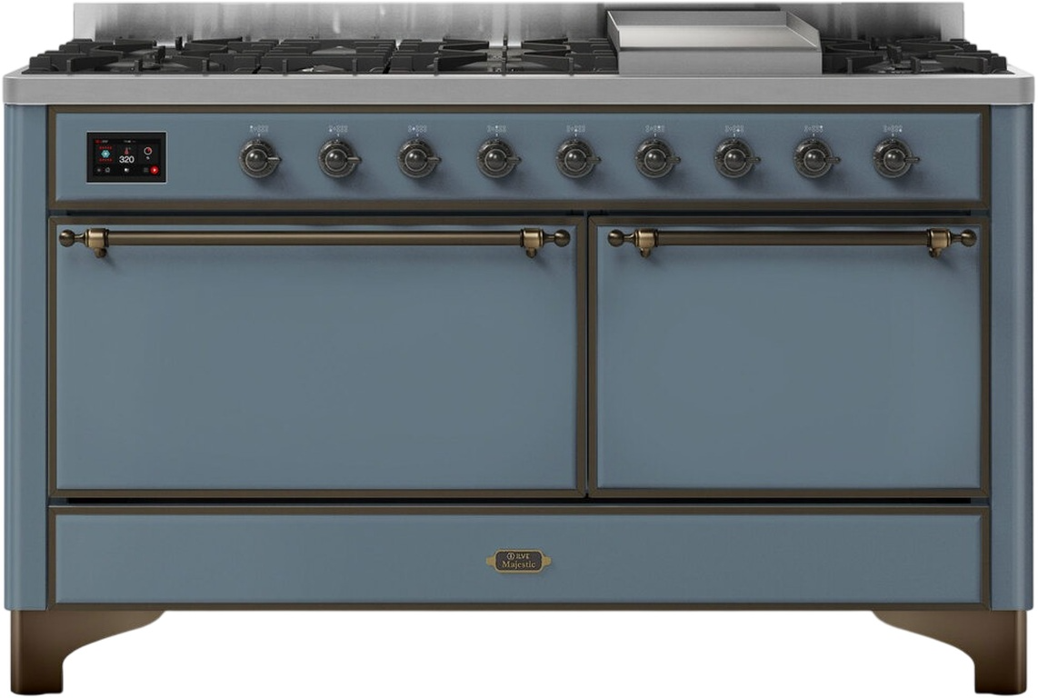 The Majestic 60" dual fuel range combines the classic Italian style and cutting-edge technology. This range feature 9 gas burners and a griddle, equipped with a total black brass flame spreader with non-stick nanotechnological coating, dual 3.5 + 2.3 cu. ft. total oven capacity, 4.3" full touch oven control display and easy clean enamel oven cavity.Read More