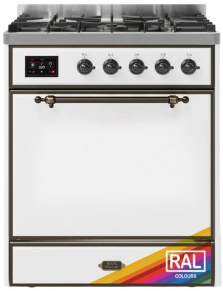 The 30" Majestic dual fuel range combines the classic Italian style and cutting-edge innovative technology, where form meets function. This range features a 5 gas burner cooktop, equipped with a total black brass flame spreader that has a non-stick nanotechnological coating and boasts a spacious 4 cu. ft. oven capacity.Read More