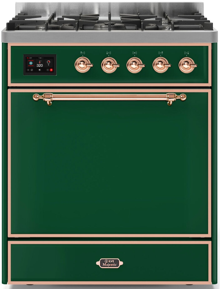 The 30" Majestic freestanding range brings the ultimate cooking experience to your kitchen. The large European Convection oven gives you the power to experiment with your dishes and get even cooking, while the full-width dishwarming drawer gives the option to use residual heat of the oven to keep cooked food warm or warm your dishes before serving. The cooktop features semi-sealed burners with various BTUs to cook whatever you want, however you want.Read More