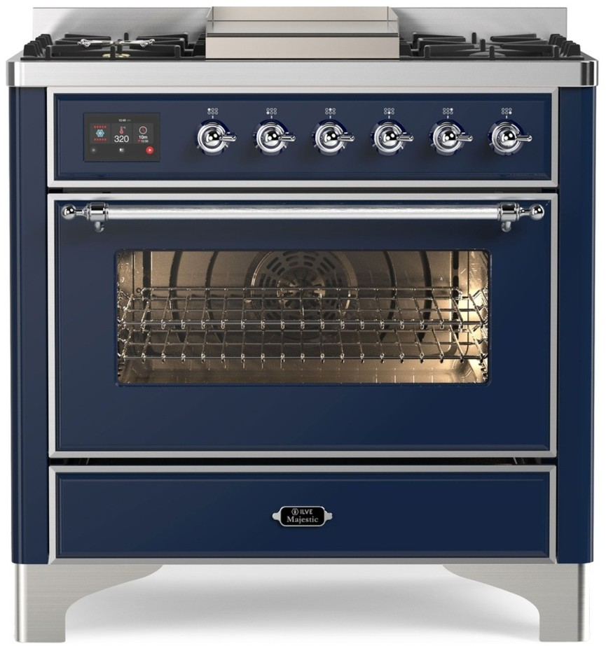 The 36" Majestic freestanding range brings the ultimate cooking experience to your kitchen. The large European Convection oven gives you the power to experiment with your dishes and get even cooking, while the full-width dishwarming drawer gives the option to use residual heat of the oven to keep cooked food warm or warm your dishes before serving. The cooktop features semi-sealed burners with various BTUs to cook whatever you want, however you want.Read More