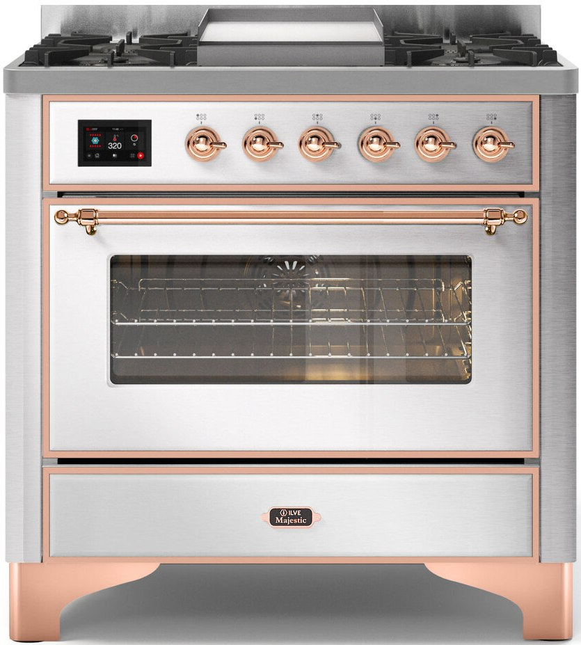 The 36" Majestic freestanding range brings the ultimate cooking experience to your kitchen. The large European Convection oven gives you the power to experiment with your dishes and get even cooking, while the full-width dishwarming drawer gives the option to use residual heat of the oven to keep cooked food warm or warm your dishes before serving. The cooktop features semi-sealed burners with various BTUs to cook whatever you want, however you want.Read More