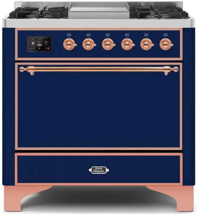 The 36" Majestic freestanding range brings the ultimate cooking experience to your kitchen. The large European Convection oven gives you the power to experiment with your dishes and get even cooking, while the full-width dishwarming drawer gives the option to use residual heat of the oven to keep cooked food warm or warm your dishes before serving. The cooktop features semi-sealed burners with various BTUs to cook whatever you want, however you want.Read More