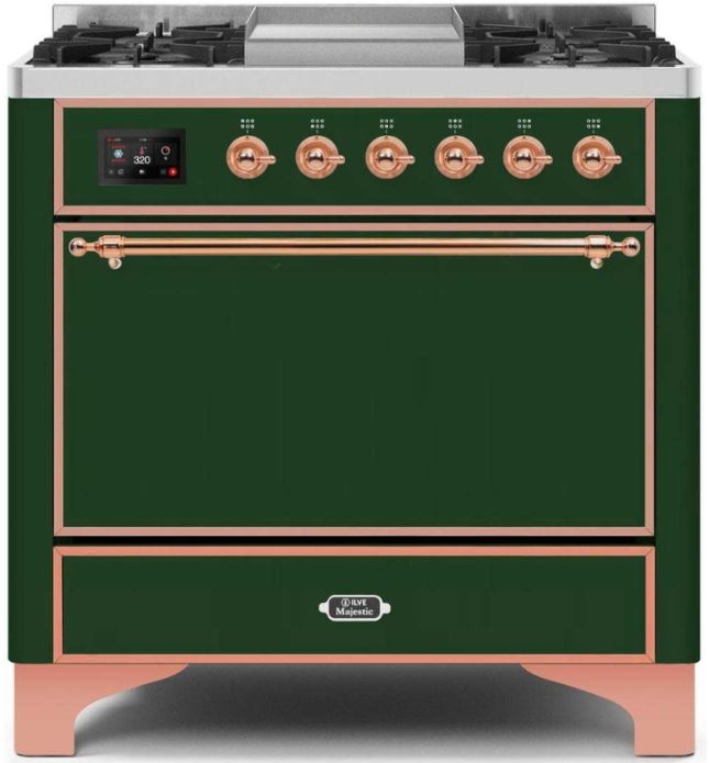 The 36" Majestic freestanding range brings the ultimate cooking experience to your kitchen. The large European Convection oven gives you the power to experiment with your dishes and get even cooking, while the full-width dishwarming drawer gives the option to use residual heat of the oven to keep cooked food warm or warm your dishes before serving. The cooktop features semi-sealed burners with various BTUs to cook whatever you want, however you want.Read More