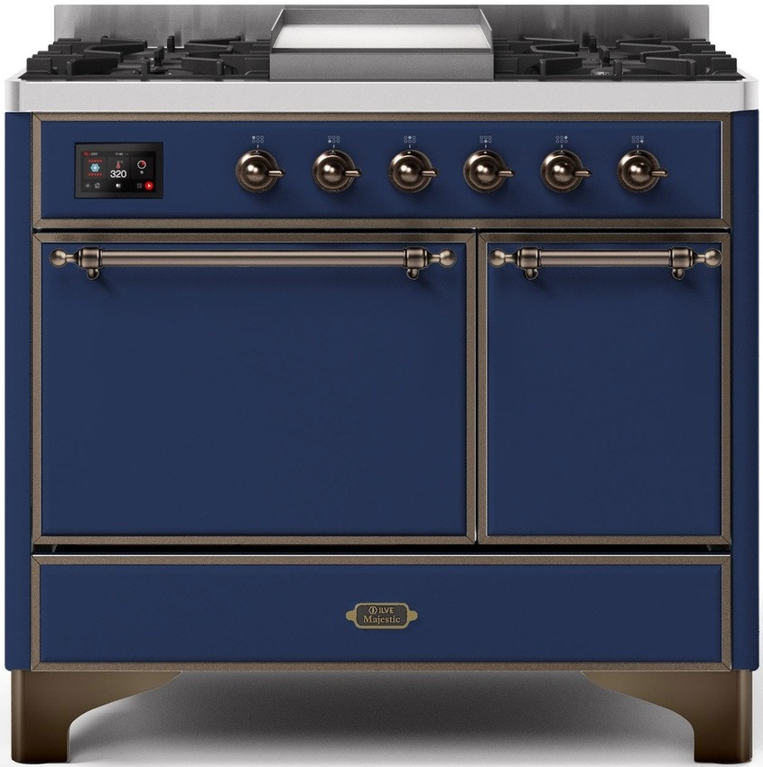 The 40" Majestic freestanding range brings the ultimate cooking experience to your kitchen. The large European Convection oven gives you the power to experiment with your dishes and get even cooking, while the full-width dishwarming drawer gives the option to use residual heat of the oven to keep cooked food warm or warm your dishes before serving. The cooktop features semi-sealed burners with various BTUs to cook whatever you want, however you want.Read More