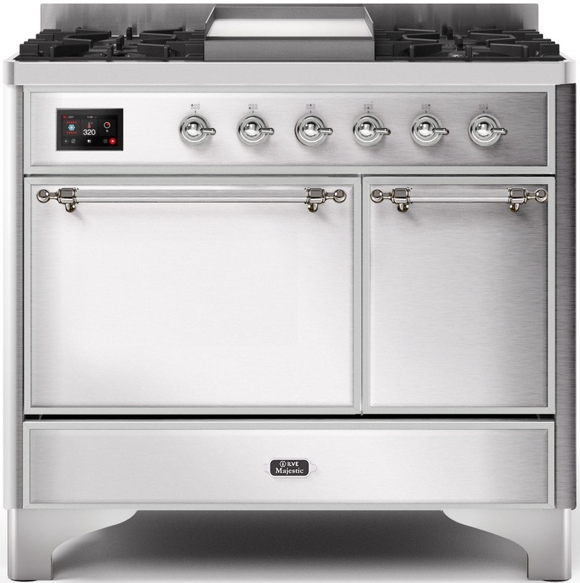 The 40" Majestic freestanding range brings the ultimate cooking experience to your kitchen. The large European Convection oven gives you the power to experiment with your dishes and get even cooking, while the full-width dishwarming drawer gives the option to use residual heat of the oven to keep cooked food warm or warm your dishes before serving. The cooktop features semi-sealed burners with various BTUs to cook whatever you want, however you want.Read More