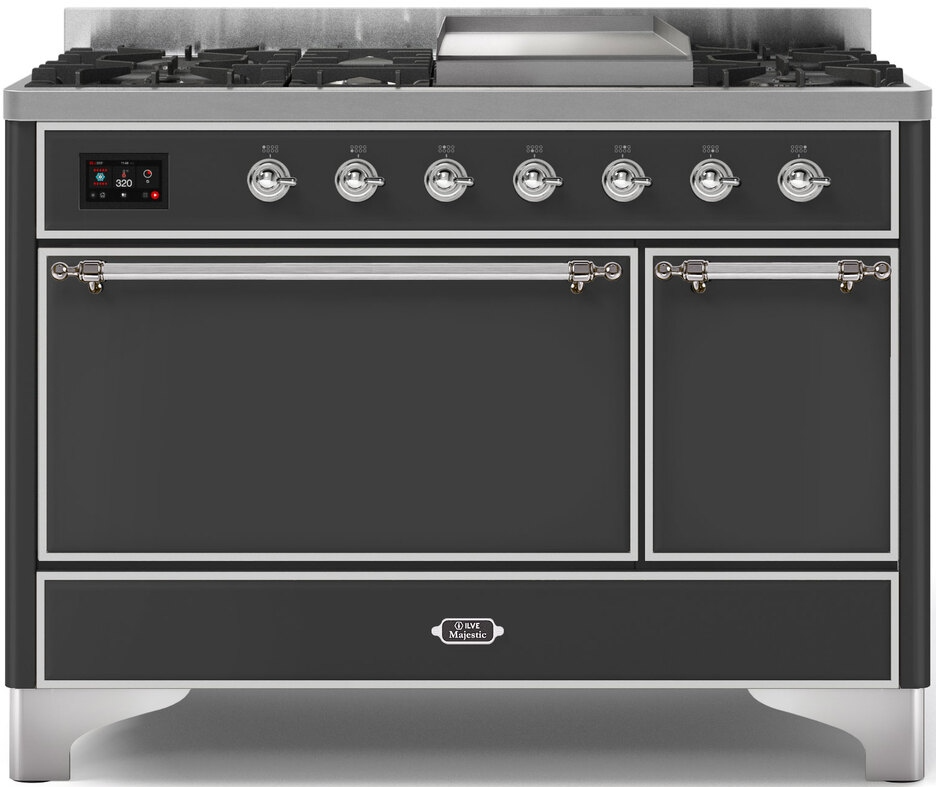 The 48" Majestic freestanding range brings the ultimate cooking experience to your kitchen. The large European Convection oven gives you the power to experiment with your dishes and get even cooking, while the full-width warming drawer gives the option to use residual heat of the oven to keep cooked food warm or warm your dishes before serving. The cooktop features semi-sealed burners with various BTUs to cook whatever you want, however you want.Read More