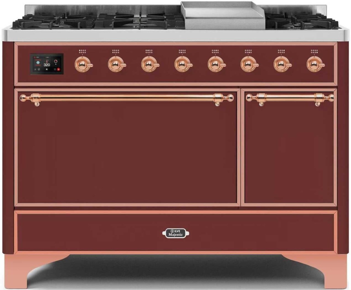 The 48" Majestic freestanding range brings the ultimate cooking experience to your kitchen. The large European Convection oven gives you the power to experiment with your dishes and get even cooking, while the full-width warming drawer gives the option to use residual heat of the oven to keep cooked food warm or warm your dishes before serving. The cooktop features semi-sealed burners with various BTUs to cook whatever you want, however you want.Read More
