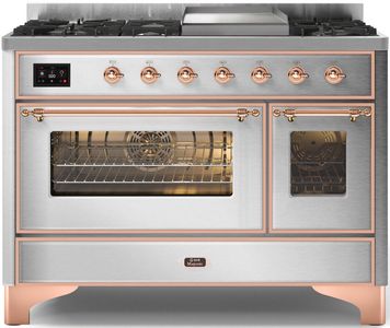 The 48" Majestic freestanding range brings the ultimate cooking experience to your kitchen. The large European Convection oven gives you the power to experiment with your dishes and get even cooking, while the full-width warming drawer gives the option to use residual heat of the oven to keep cooked food warm or warm your dishes before serving. The cooktop features semi-sealed burners with various BTUs to cook whatever you want, however you want.Read More