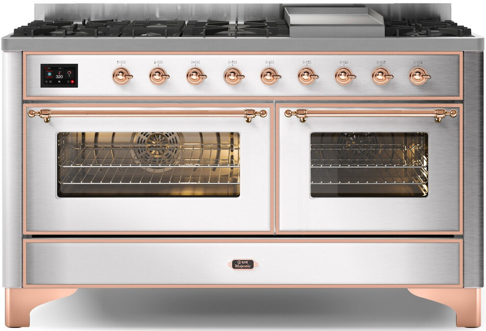The 60" Majestic freestanding range brings the ultimate cooking experience to your kitchen. The large European Convection oven gives you the power to experiment with your dishes and get even cooking, while the full-width dishwarming drawer gives the option to use residual heat of the oven to keep cooked food warm or warm your dishes before serving. The cooktop features semi-sealed burners with various BTUs to cook whatever you want, however you want.Read More