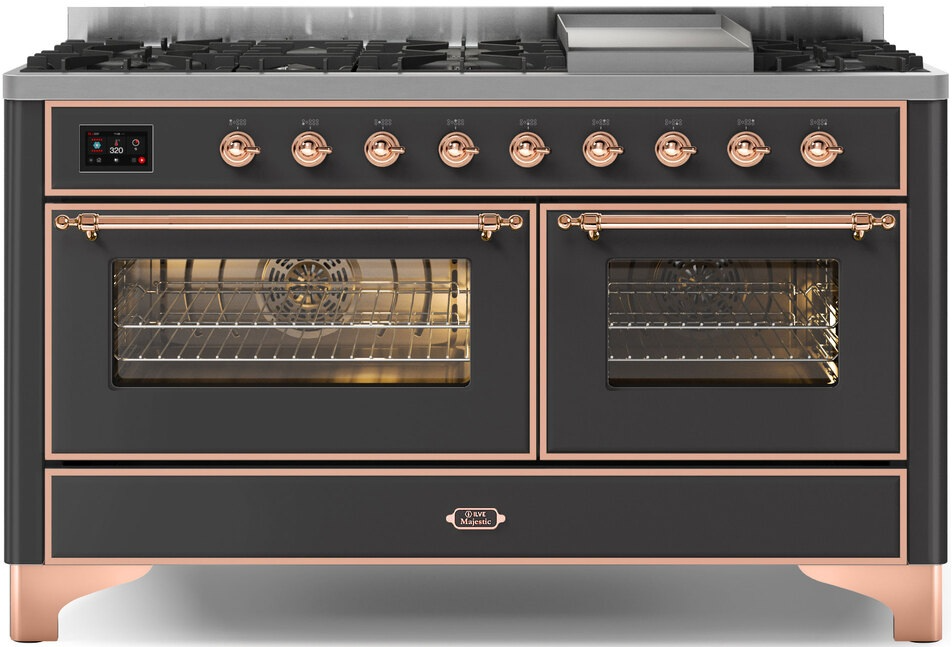 The 60" Majestic freestanding range brings the ultimate cooking experience to your kitchen. The large European Convection oven gives you the power to experiment with your dishes and get even cooking, while the full-width dishwarming drawer gives the option to use residual heat of the oven to keep cooked food warm or warm your dishes before serving. The cooktop features semi-sealed burners with various BTUs to cook whatever you want, however you want.Read More