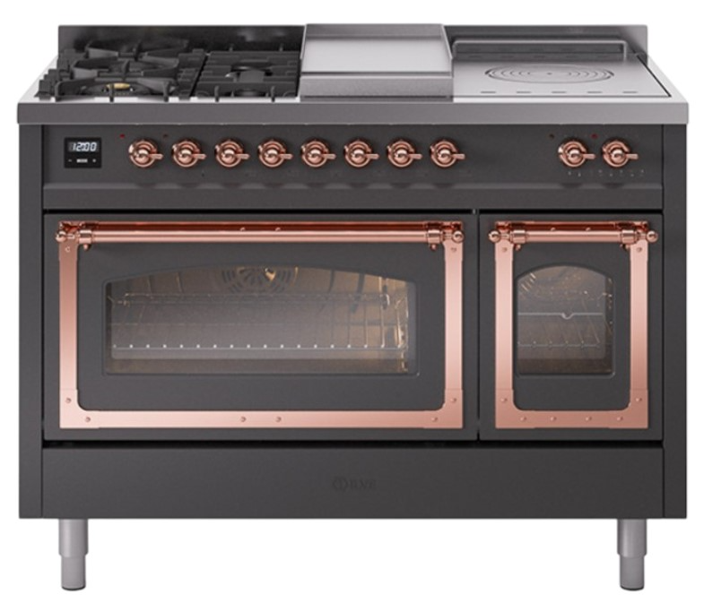 Introducing the new Nostalgie II 48" dual fuel range, a classic addition with a touch of innovation to any kitchen. This range feature sealed burners equipped with total black brass burner that has a non-stick nanotechnological coating, heavy cast iron grates.Read More