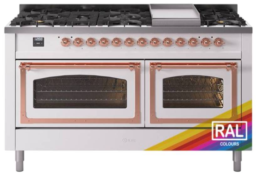 Introducing the new Nostalgie II 60" dual fuel range, a classic addition with a touch of innovation to any kitchen. This range feature sealed burners equipped with total black brass burner that has a non-stick nanotechnological coating, heavy cast iron grates, 3.5 + 2.3 cu. ft. dual oven capacity and soft closing door system.Read More