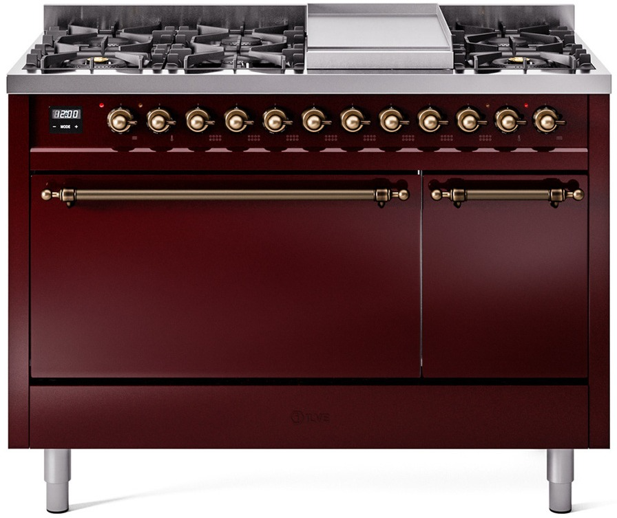Introducing the new Nostalgie II 48" dual fuel range, a classic addition with a touch of innovation to any kitchen. This range feature sealed burners equipped with total black brass flame spreader that has a non-stick nanotechnological coating, heavy cast iron grates, 3.5 + 1.52 cu. ft. total double oven capacity and soft closing door system.Read More