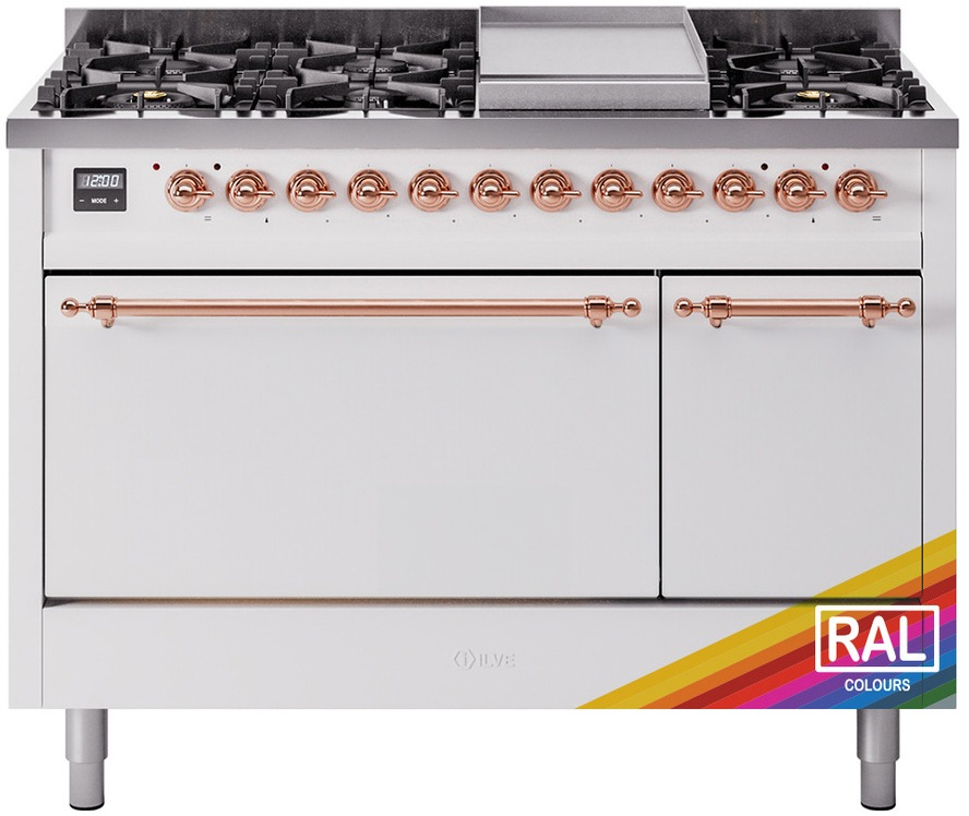 Introducing the new Nostalgie II 48" dual fuel range, a classic addition with a touch of innovation to any kitchen. This range feature sealed burners equipped with total black brass flame spreader that has a non-stick nanotechnological coating, heavy cast iron grates, 3.5 + 1.52 cu. ft. total double oven capacity and soft closing door system.Read More