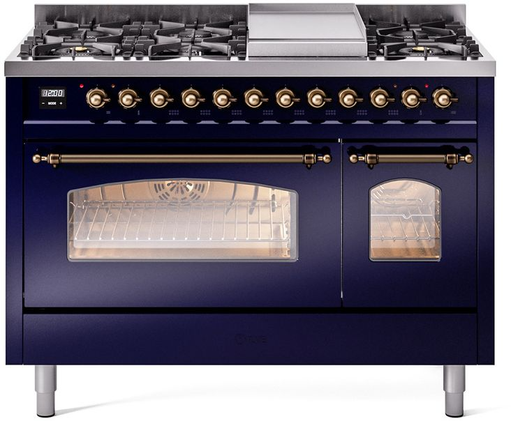 Introducing the new Nostalgie II 48" dual fuel range, a classic addition with a touch of innovation to any kitchen. This range feature sealed burners equipped with total black brass flame spreader that has a non-stick nanotechnological coating, heavy cast iron grates, 3.5 + 1.52 cu. ft. total double oven capacity and soft closing door…Read More