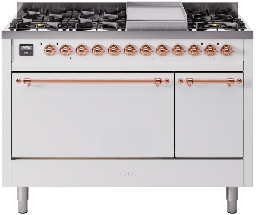 Introducing the new Nostalgie II 48" dual fuel range, a classic addition with a touch of innovation to any kitchen. This range feature sealed burners equipped with total black brass flame spreader that has a non-stick nanotechnological coating, heavy cast iron grates, 3.5 + 1.52 cu. ft. total double oven capacity and soft closing door system.Read More