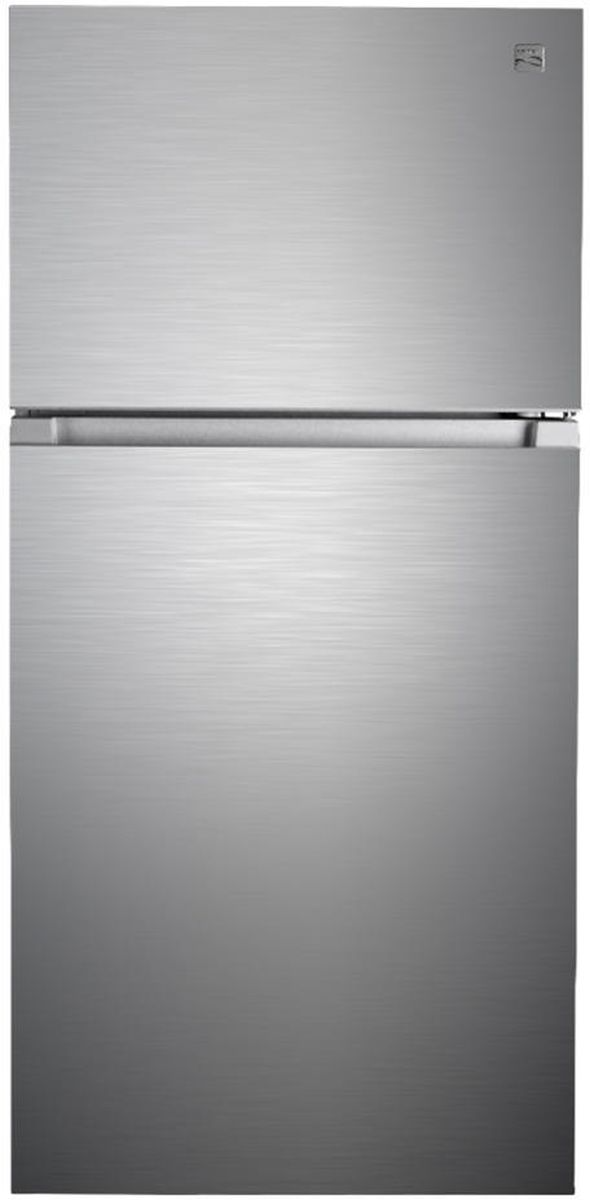 This Kenmore 18.2 cu. ft. top freezer refrigerator features a sleek exterior design with pocket handles. The fridge is loaded with the latest features like full-width glass shelves, clear gallon-sized door bins, and humidity-controlled crispers to keep fruits and veggies fresh.Read More