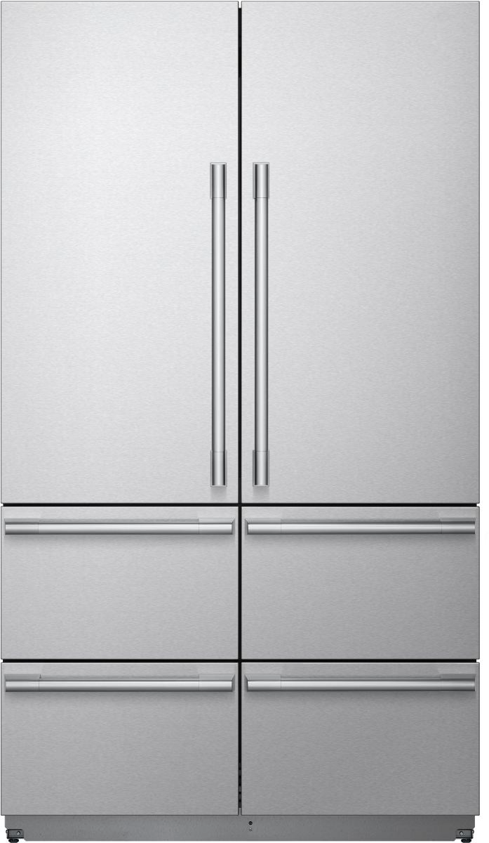 For ease of installation, this 48-Inch Built-In French Door Refrigerator/Freezer comes pre-assembled with Professional Stainless Steel Panels and Handles, accompanied by a Frame Kit suitable for retrofit, proud installations. Our preservation technology features dual compressors and a metal interior to significantly reduce temperature fluctuations.Read More