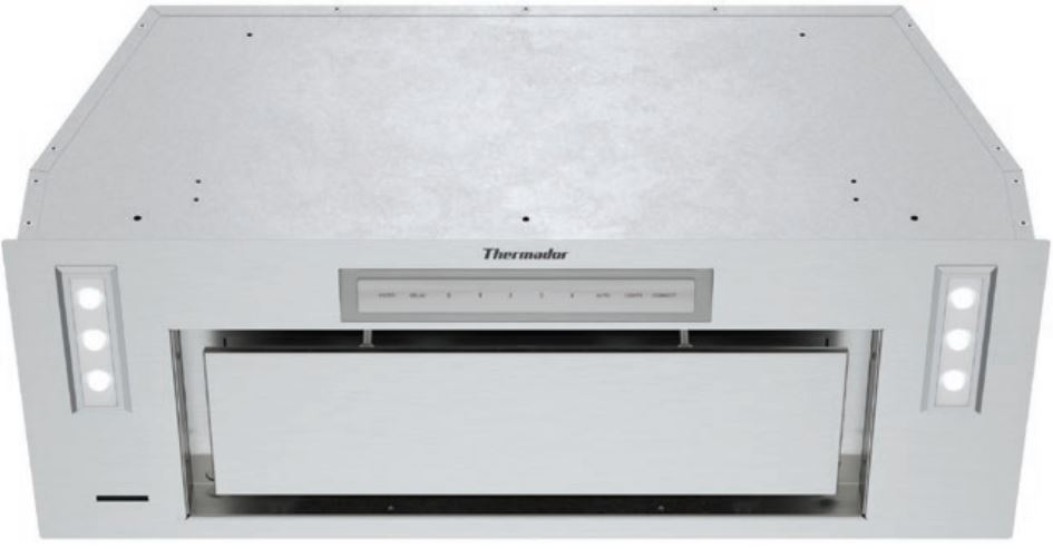Thermador® Masterpiece® Series 30" Stainless Steel Insert Range Hood with Powerfully quiet® ventilation systems is equipped with the Thermador Connected Experience by Home Connect™.Read More