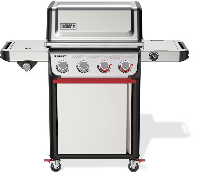 Grill food that tastes better than ever on the reinvented 4-burner, stainless steel Spirit® SPX-435 Smart Gas Grill with Sear Zone, Wi-Fi® enabled digital thermometer, and side burner. Never undercook or overcook your food again with the Wi-Fi® enabled digital thermometer, which comes with one wired food probe. Pair it with the Weber Connect® App to monitor remotely and get alerts on your smartphone when the grill is preheated and when your food is ready to flip. Create bold, flavorful sear marks on meat, fish, and vegetables with 7mm stainless steel cooking grates and two red Boost Burner knobs that unleash 40% more power in the Sear Zone. Ignite each individual burner easily with one hand with Snap-Jet Ignition and control the heat precisely with a full range of temperatures from high to low and everything in between. Make the most of your space by adding a variety of Weber Works™ accessories that drop into the right-side table or snap onto both side rails.* Transform your grill into a griddle with a rust-resistant griddle insert or turn your grill into a pizza oven, wok, Dutch oven, and more by adding a Weber Crafted® frame kit and custom-fit grillware.Read More