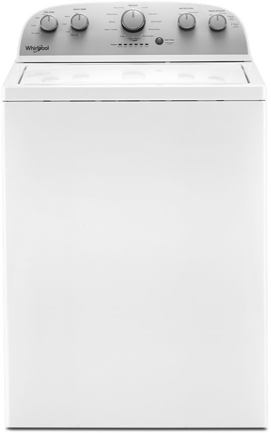 Give clothes a deep and gentle clean with the Whirlpool® high efficiency washer with agitator. The two-way wash action agitator and stainless steel washer drum turn in opposite directions, moving fabrics smoothly through the wash. The Quick Wash cycle washes small loads with high spin speeds removing more water. This auto sensing washer also regulates water levels based on load size.Read More