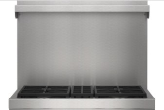 Acts like a backsplash, preventing food spatters on wall tile, exposed brick, and other surfaces behind the range. Also, it creates a thermal barrier for combustible surfaces. The shelf has a usable depth of approximately 8.5" and will support up to 30 pounds. Keeps food warm when paired with a 27" deep hood with heat lamps.Read More